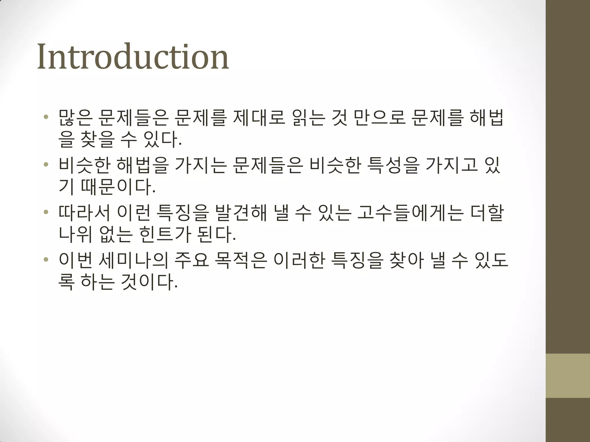 • 비슷한 해법을 가지는 문제들은 비슷한 특성을 가지고 있