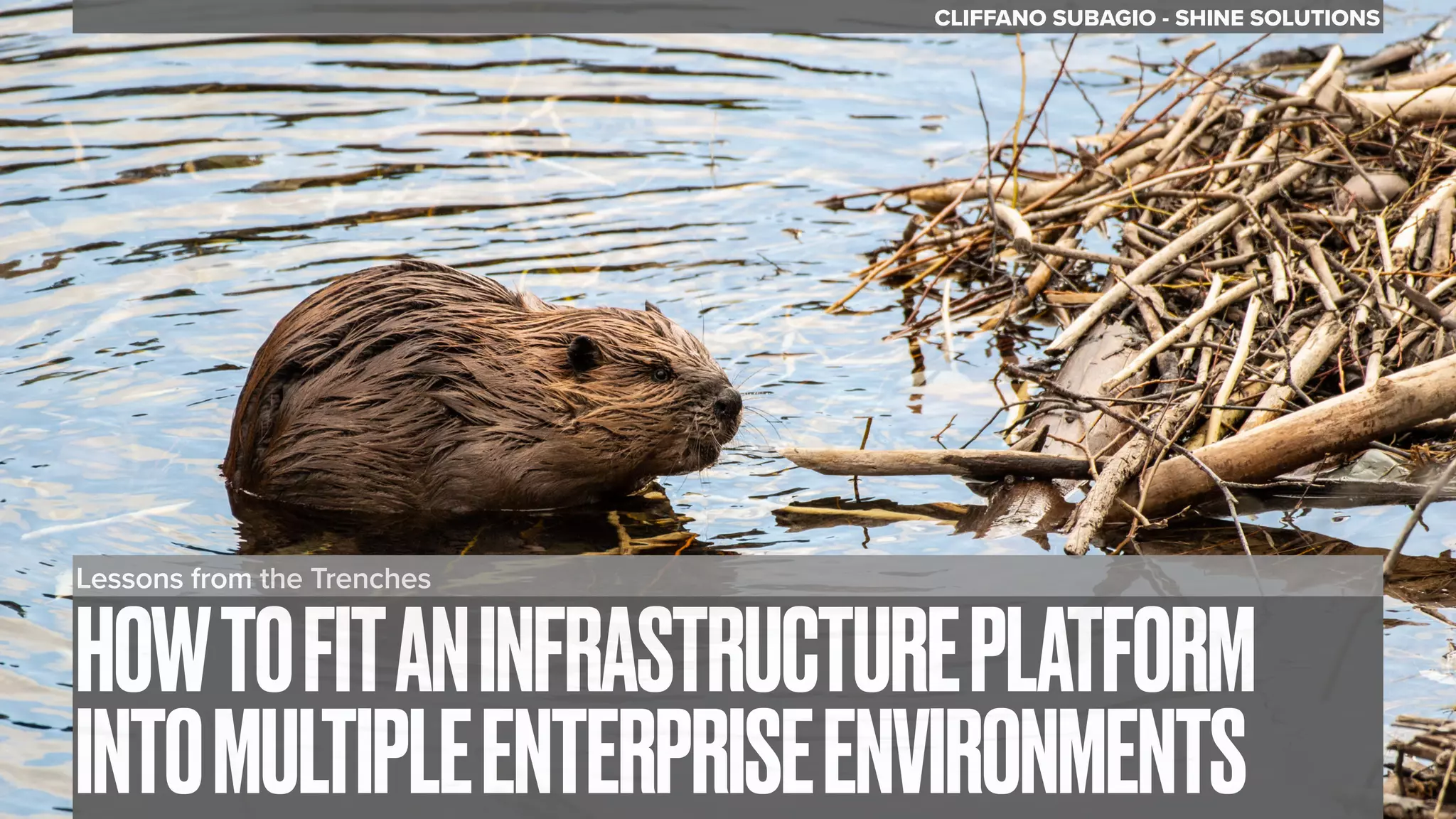 This document discusses the challenges and lessons learned from running the same infrastructure platform across multiple enterprise environments. Some challenges included organizational structure differences, technical choices, and technology dependencies between enterprises. Solutions involved using Ansible for abstraction, user-configurable machine images and environments, feature flags, and a modular codebase. The goal is to scale the solutions to more projects and resolve infrastructure issues for multiple enterprises.