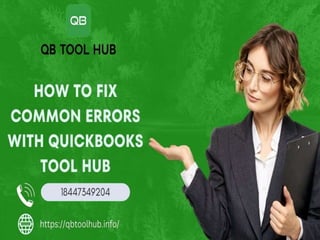 The document provides an overview of QuickBooks Tool Hub, a software designed to troubleshoot and resolve common QuickBooks errors, enhancing accounting operations for businesses. It outlines the various features of the tool, including sections for fixing company file issues, network problems, installation errors, and password resets, alongside step-by-step guidance for downloading and using the hub. The presentation emphasizes the importance of keeping the software updated and encourages users to seek additional help if complex issues arise.