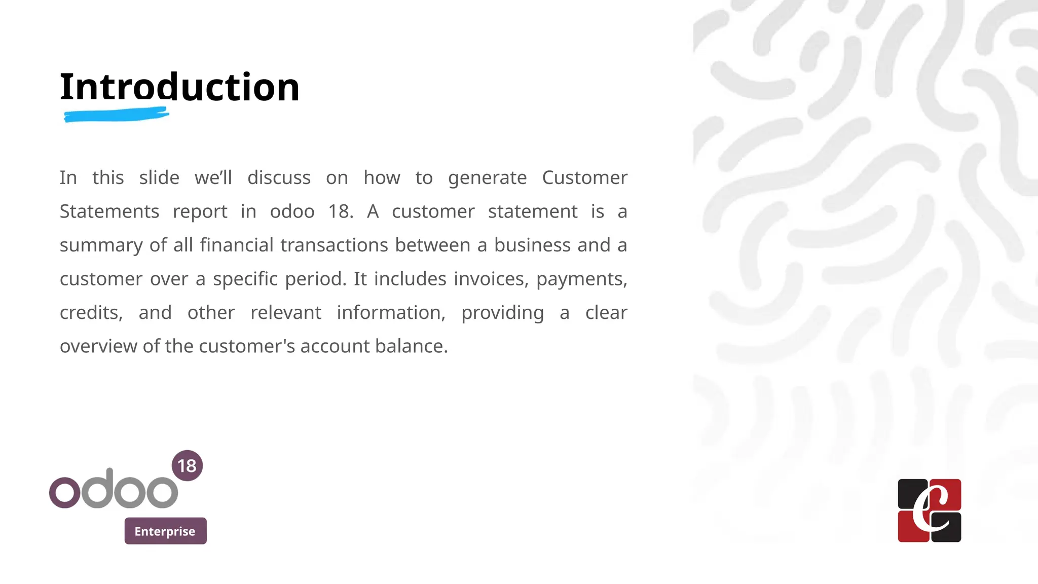 This document explains how to generate customer statements reports in Odoo 18 Enterprise, detailing the steps required to install the necessary module and access the reports. It covers multiple methods to create these reports from both the accounting and contacts modules, providing a comprehensive overview of customer financial transactions. Additionally, it includes resources for further information, such as the company's website and YouTube channel for Odoo-related content.