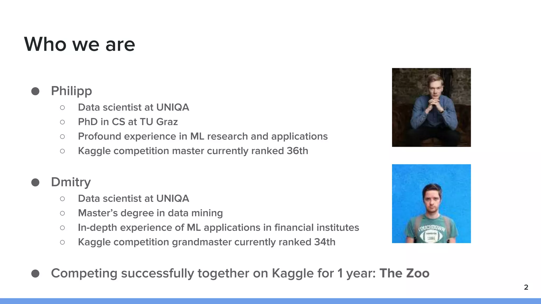 The document outlines how to get started in Kaggle, an online platform for data science competitions, founded in 2010 and acquired by Google in 2017. It describes the structure of competitions, types of data and domains involved, and strategies for success, as shared by experienced data scientists Philipp Singer and Dmitry Gordeev. Additionally, it emphasizes the importance of learning through participation, exploring various competitions, and engaging with the Kaggle community.