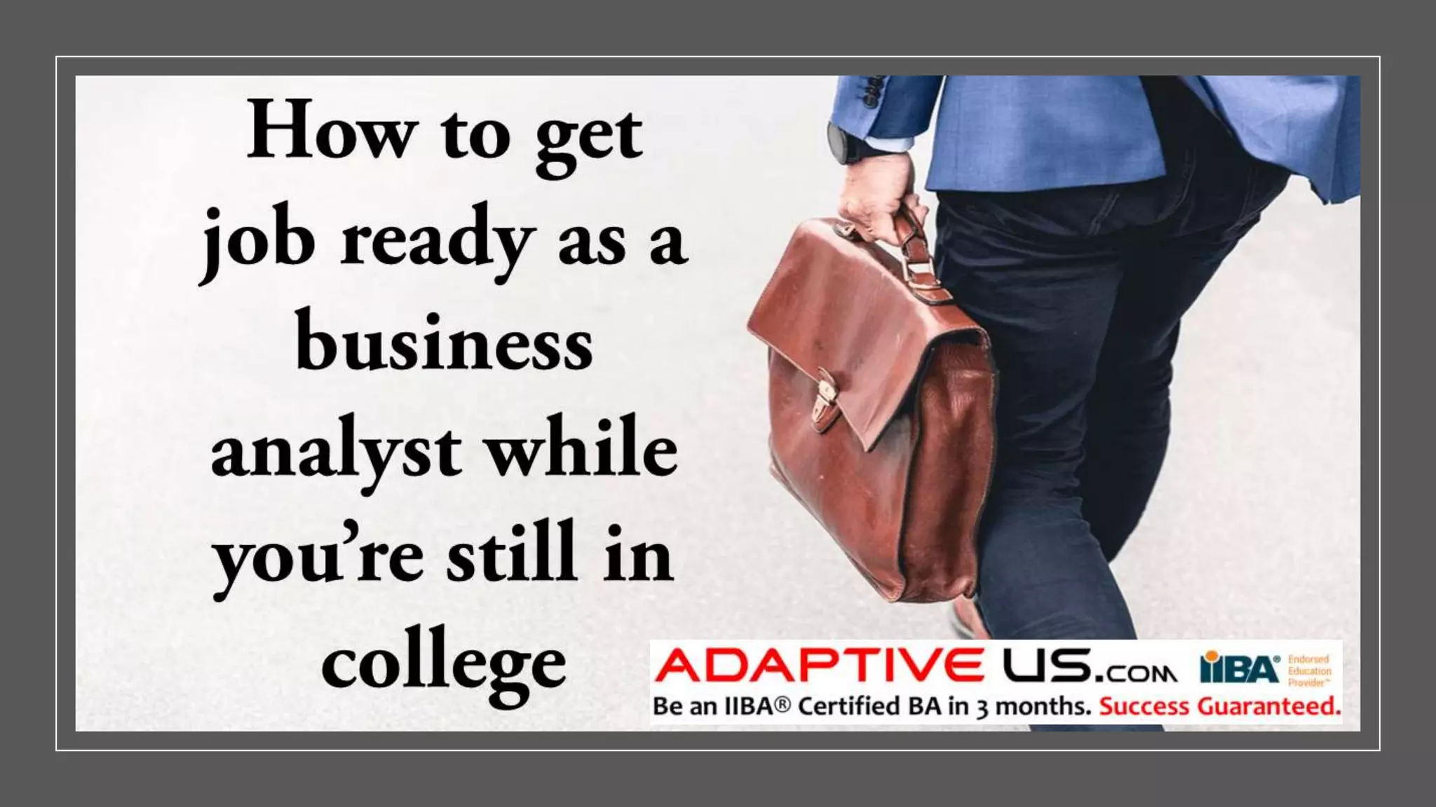 This document provides tips for college students to prepare for a career as a business analyst. It recommends developing communication and interpersonal skills, taking electives that lay a good foundation, seeking leadership opportunities, pursuing internships, getting certified, networking, and continually learning through solving case studies.