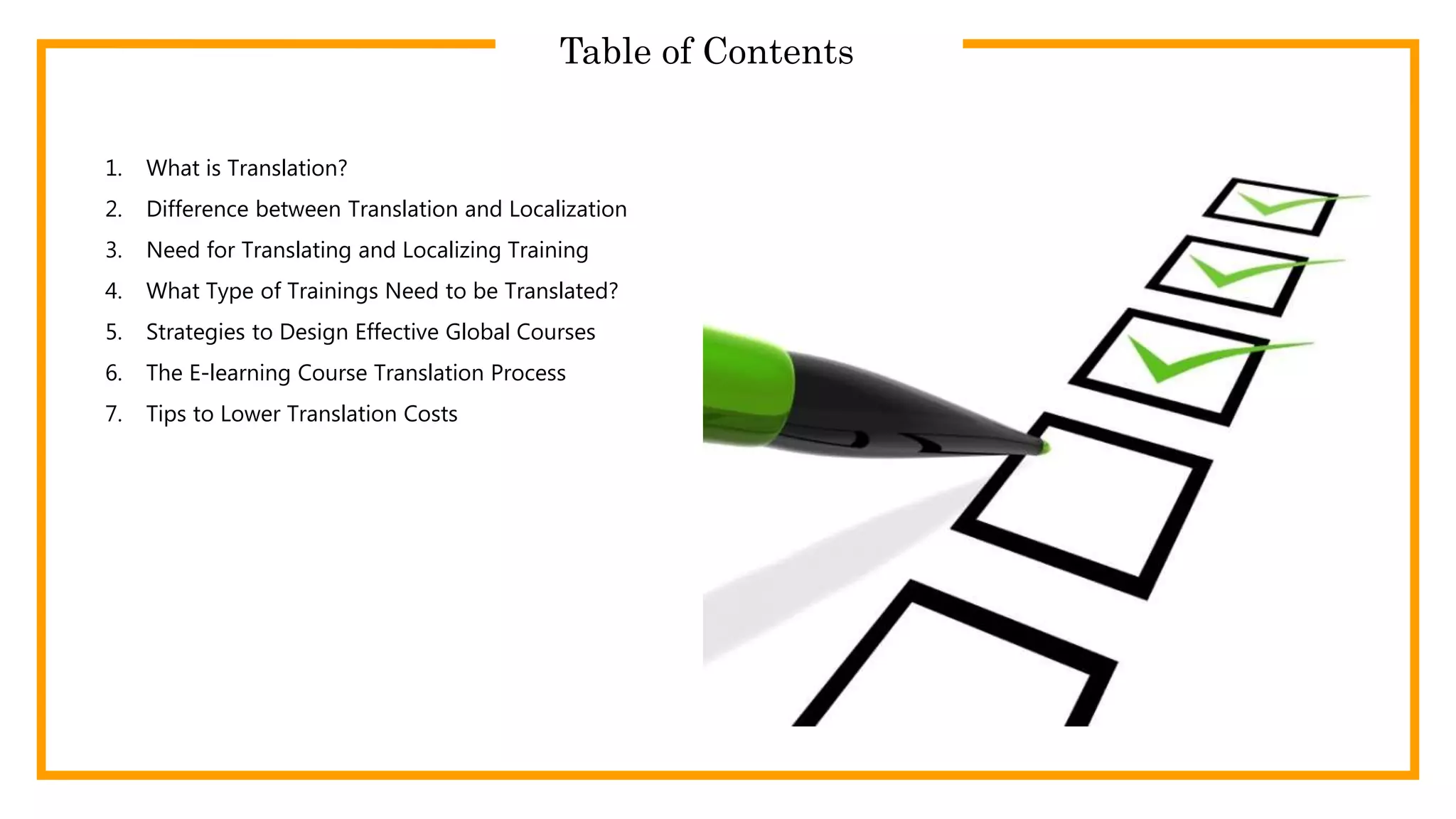 The document outlines effective strategies for translating e-learning courses, emphasizing the distinction between translation and localization. It details the necessity of translation for various training types, including compliance and product training, and provides a step-by-step translation process. Additionally, tips for reducing translation costs are highlighted, focusing on content simplification and the use of professional tools.