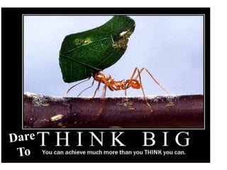 The document discusses the keys to achieving total success through positive attitude and action. It argues that success requires having a burning desire, setting big goals, having strong faith, and feeling passion. It also identifies doubts, delay, and division as enemies of success, while faith, action, and love are friends of success on the path to achieving one's goals.