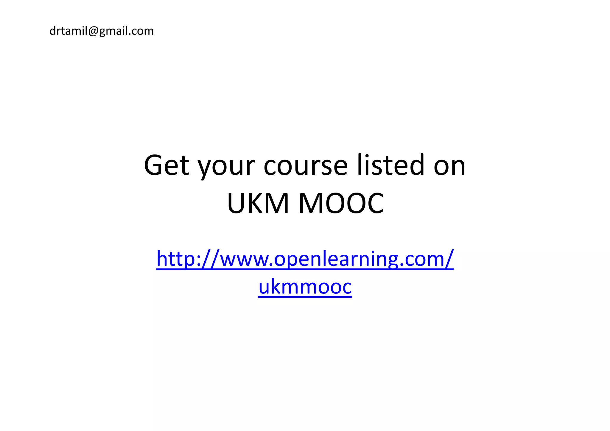 4) Inform the UKM MOOC secretariat of the course details and URL via email.