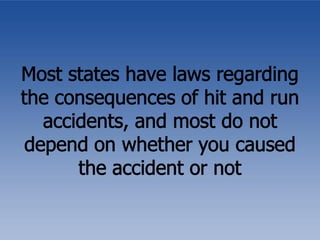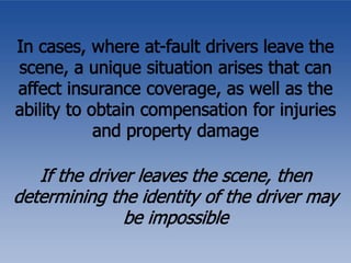 A hit and run can involve not just drivers and passengers, but also pedestrians and fixed objects, such as other cars. Learn more about hit and run in this presentation.