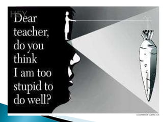 Slow learners have normal physical abilities but struggle with schoolwork. They want to learn but have difficulties with the learning process. Teachers must be patient and use repetition, success-oriented activities, relating topics to real life, and varying instructional techniques. Assessments for slow learners should be step-by-step and focus on building confidence.