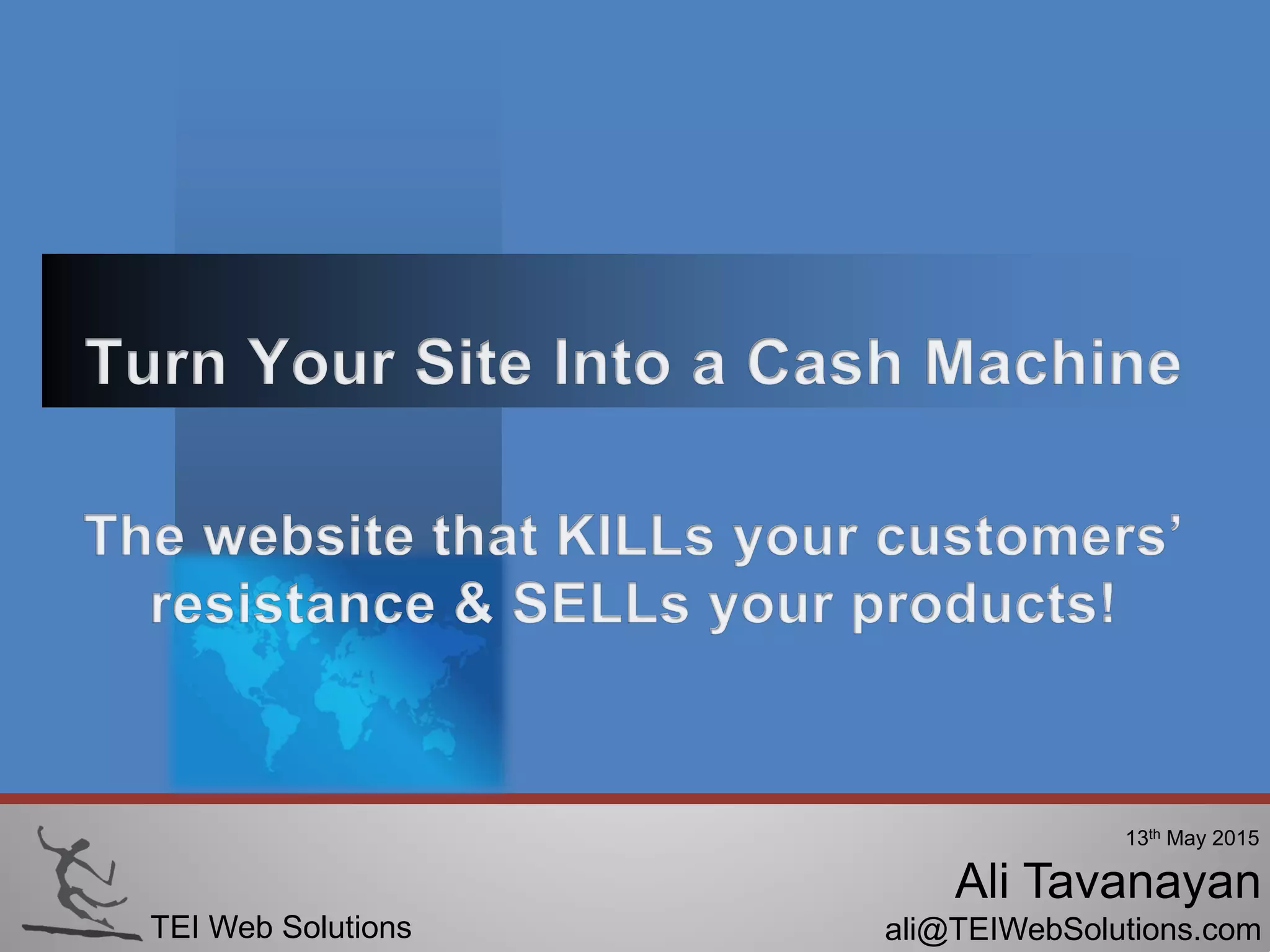 The document outlines a proposal by Ali Tavanayan, director of TEI Web Solutions, discussing web development best practices and strategies for improving user experience on e-commerce sites. Key points include the importance of clarity in design, effective call-to-action strategies, and increasing traffic through SEO and social media engagement. It also emphasizes the need for quality visuals, ease of use, and robust analytics to optimize sales potential.