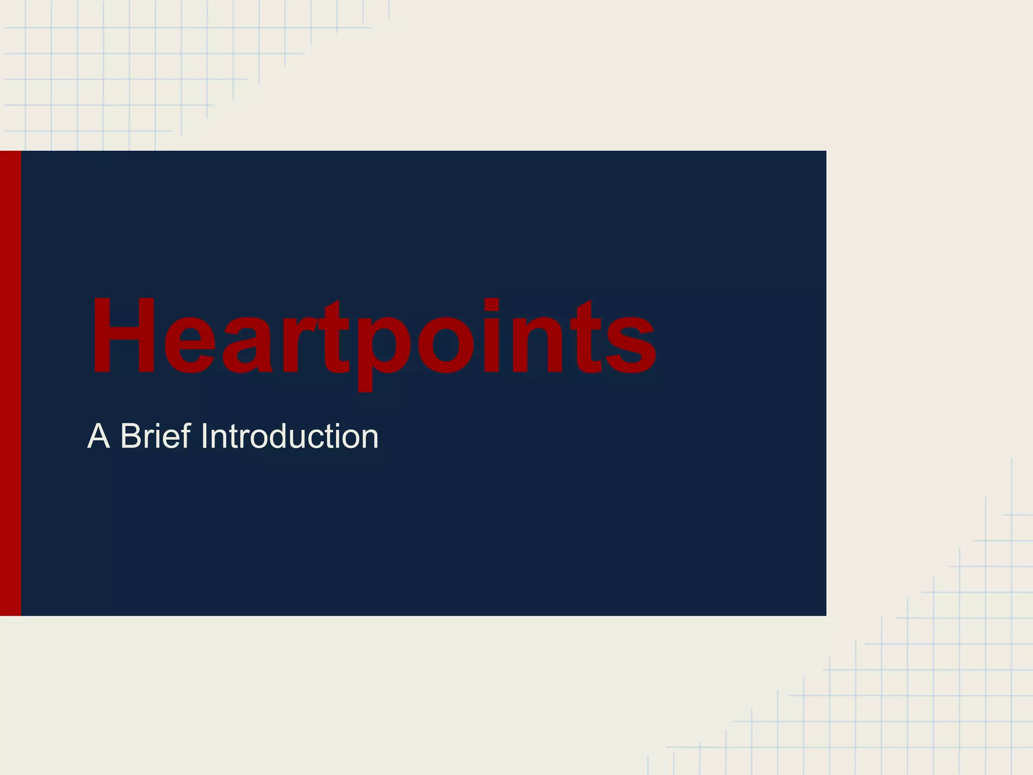 Heartpoints is a Christian app founded by Yed Anikpo to help users cultivate personal holiness. The app allows users to track their spiritual walks by "checking in" to positive or negative categories like worshiping God or dealing with anger. Users select a specific place, view a relevant Bible verse, and add a comment. Users can view their history, identify patterns, and generate a to-do list to pray over positive and negative check-ins. The goal is to provide tools to help users watch and pray as inspired by scripture and Puritan writings.