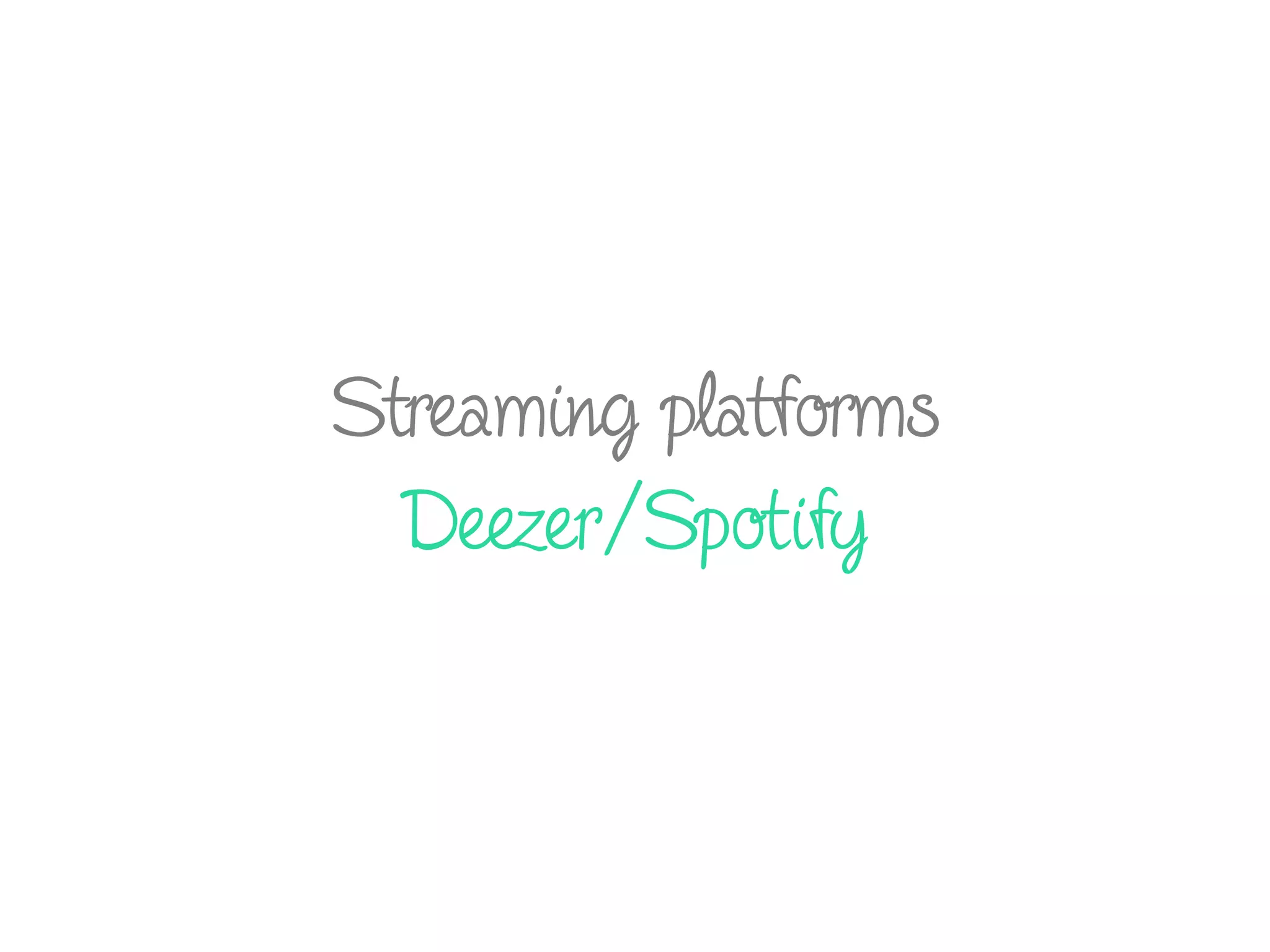 The document compares the leading music streaming platforms, Deezer and Spotify, detailing their user bases, available features, and integrated applications for brands and labels. It highlights key functionalities such as music recommendations, playlist creation, and thematic applications designed to enhance user experience and discoverability for artists. Additionally, it provides guidance on creating effective applications for labels and monitoring their impact on music catalog discovery.