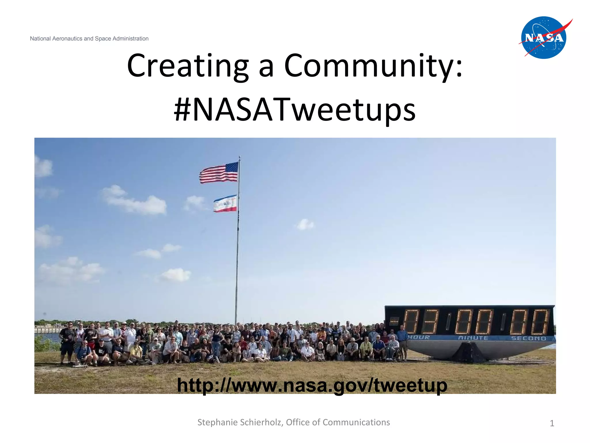 The document outlines the planning and execution of NASA's #nasatweetups, in-person gatherings designed to engage NASA followers and build a community of advocates. It details steps for successful planning, participant selection, and event management, while encouraging interaction and feedback to enhance future events. The ultimate goal is to foster a shared community experience among participants, creating lasting connections with the NASA brand.