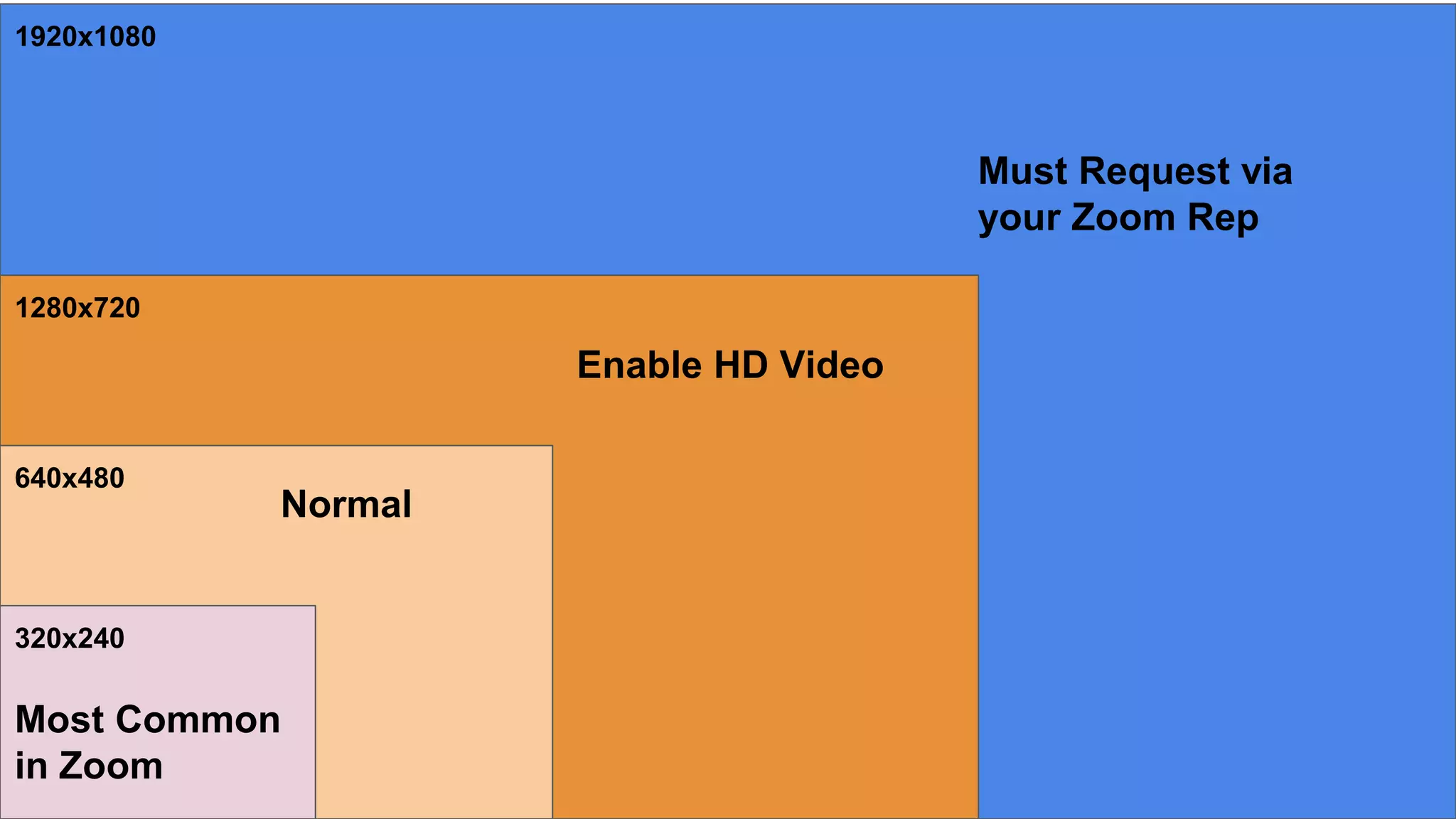 The document provides guidelines on improving Zoom video quality, highlighting resolutions from 320x240 to 1920x1080 and requirements for enabling HD video. It explains that HD video requires specific account types, desktop versions, and bandwidth, with distinctions between standard HD (720p) and full HD (1080p). Additional features include statistics for video performance and the impact of virtual backgrounds on video quality.