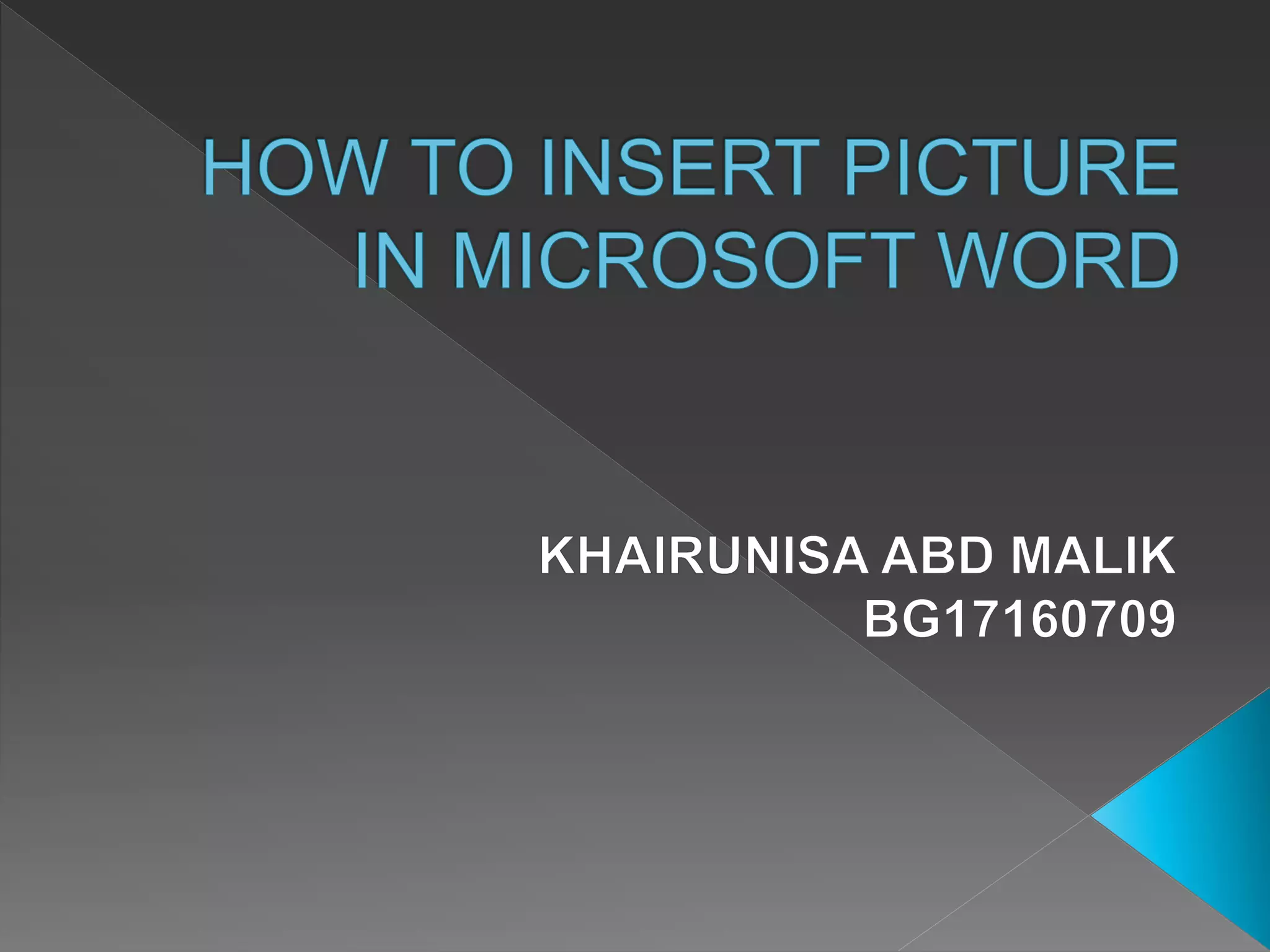 To insert a picture into a document, click on the Insert tab and select Picture from the Illustrations group to browse for a picture file, select it, and click Insert. Once inserted, the picture will appear on the page and its size, quality, color, and effects can be adjusted.