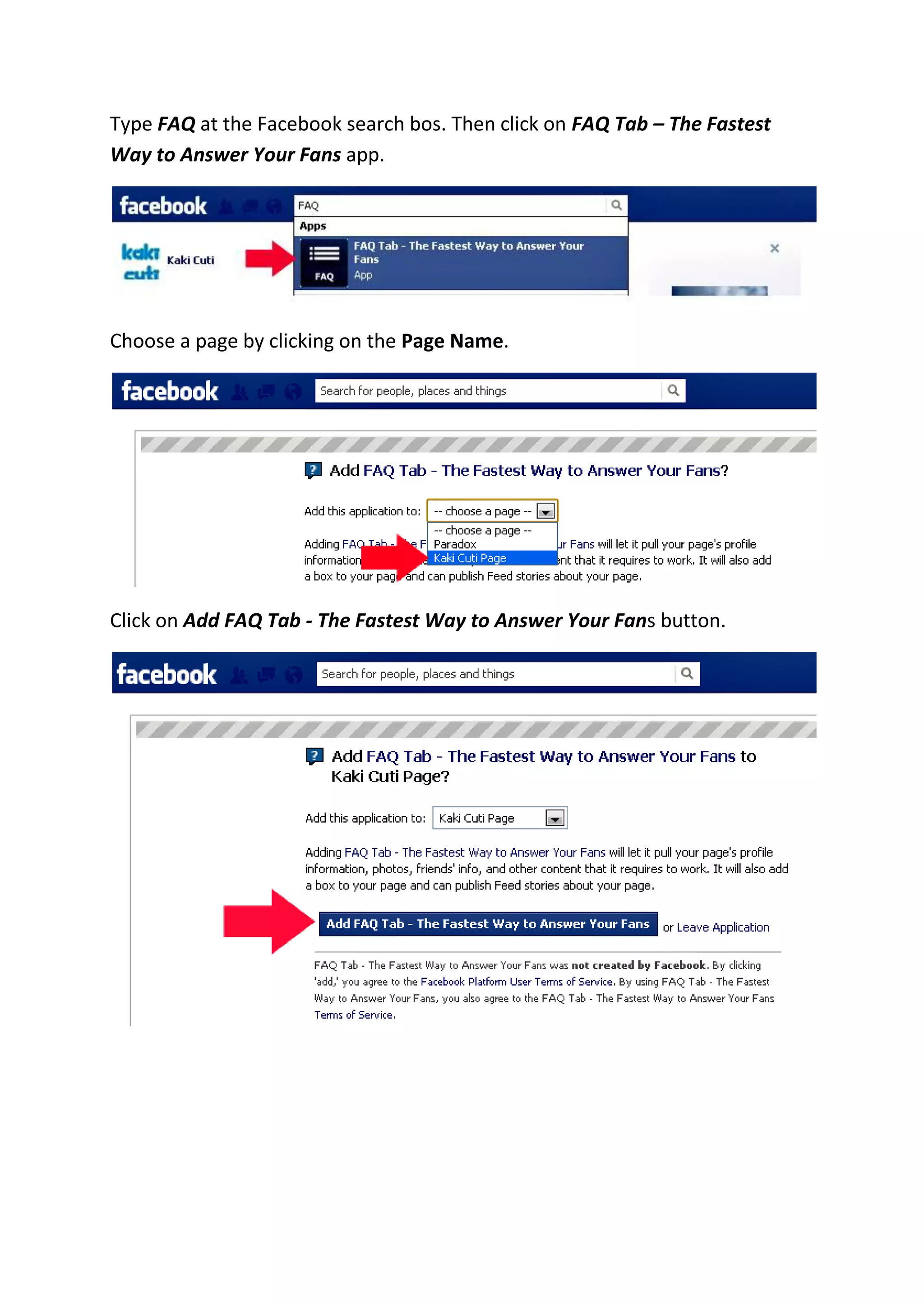 2. Click the "Add FAQ Tab - The Fastest Way to Answer Your Fans" button to install the app on your page wall.