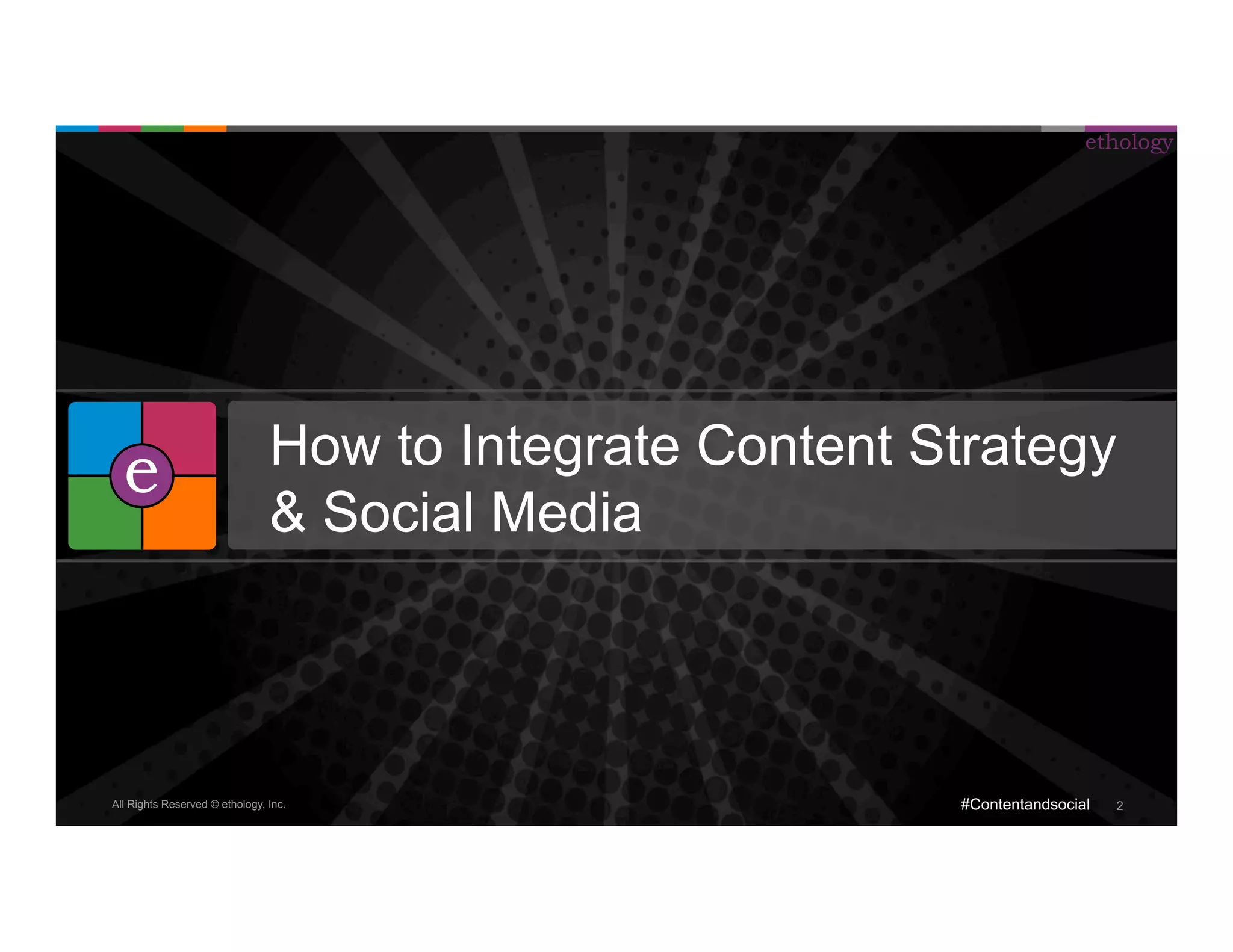The document discusses the integration of content strategy and social media for effective digital marketing, highlighting the importance of audience intelligence and strategic alignment. It emphasizes that content serves as the foundation for social media engagement, urging brands to focus on a customer-centric approach and to understand user needs. The document also includes insights into best practices, examples, and tools for developing a unified content and social media strategy.