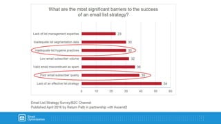 The document discusses the importance of maintaining a validated email subscriber list to enhance deliverability and improve marketing ROI. Key benefits include reduced bounce rates and increased inbox placement through methods like email verification and real-time validation. It also outlines next steps for further engagement, including learning resources and demo requests.