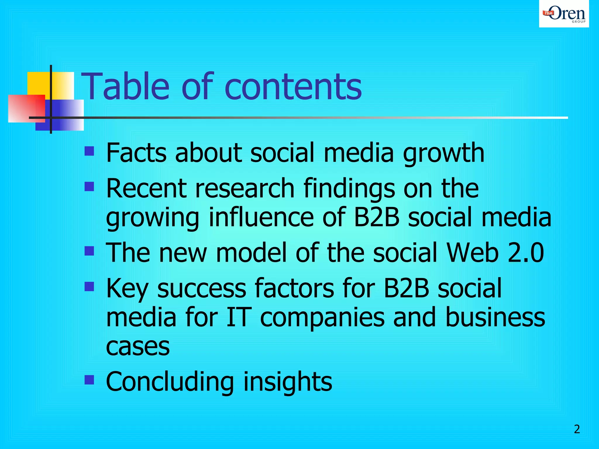 The document discusses strategies for IT companies to effectively leverage B2B social media, highlighting the rapid growth and influence of platforms like LinkedIn, Facebook, and Twitter. Key success factors include developing a clear social media strategy, creating engaging content, and utilizing both public and private online communities to enhance brand visibility and customer interaction. It emphasizes the importance of measuring social ROI and adopting a centralized approach to mitigate 'social media chaos' within organizations.