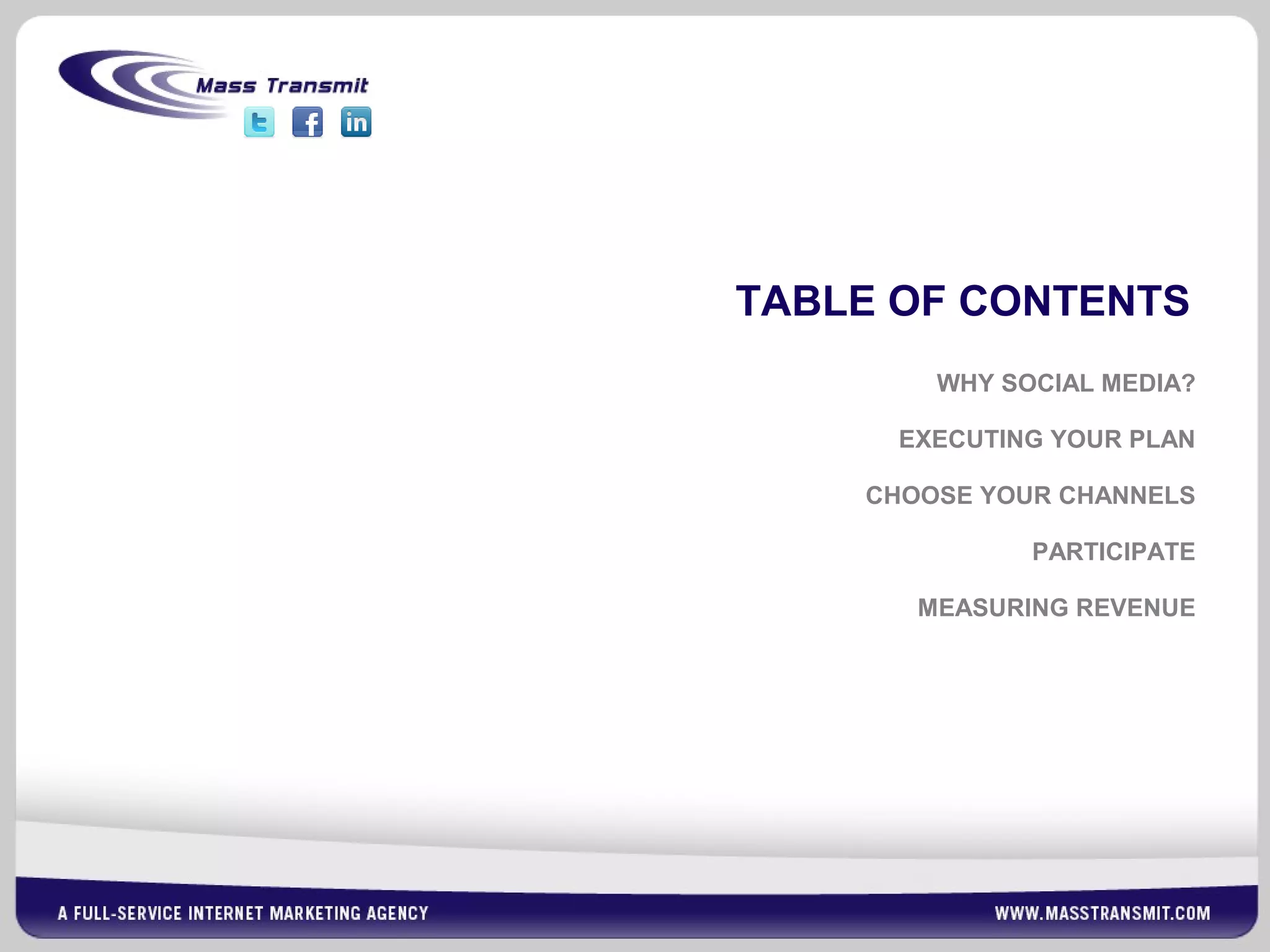 The document explains how to leverage social media for revenue generation by transitioning from traditional outbound marketing to inbound strategies. It outlines the benefits of social media, the importance of defining goals and audiences, and how to execute a plan that includes various channels like blogs, Twitter, Facebook, LinkedIn, YouTube, and SlideShare. Additionally, it emphasizes the need for monitoring, measuring success, and understanding the ROI of social media efforts.