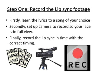 To lip sync, first learn song lyrics and record yourself mouthing the words. Then import the song into video editing software. Sync the audio and video by lining up the lip movements with the song so it looks like your mouth matches the sung words. The final video makes it appear the singer is performing the song.