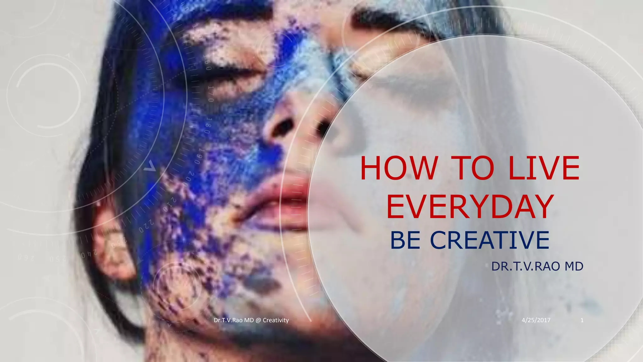 The document discusses characteristics of highly creative people based on the observations of Dr. T.V. Rao. It notes that highly creative individuals have brains wired differently, constantly seek new ideas, focus intensely on their work, think and communicate through stories, and experience emotional highs and lows from their deep engagement with creativity. They are driven by a need to create and stay true to their authentic vision despite potential misunderstanding or lack of popularity.