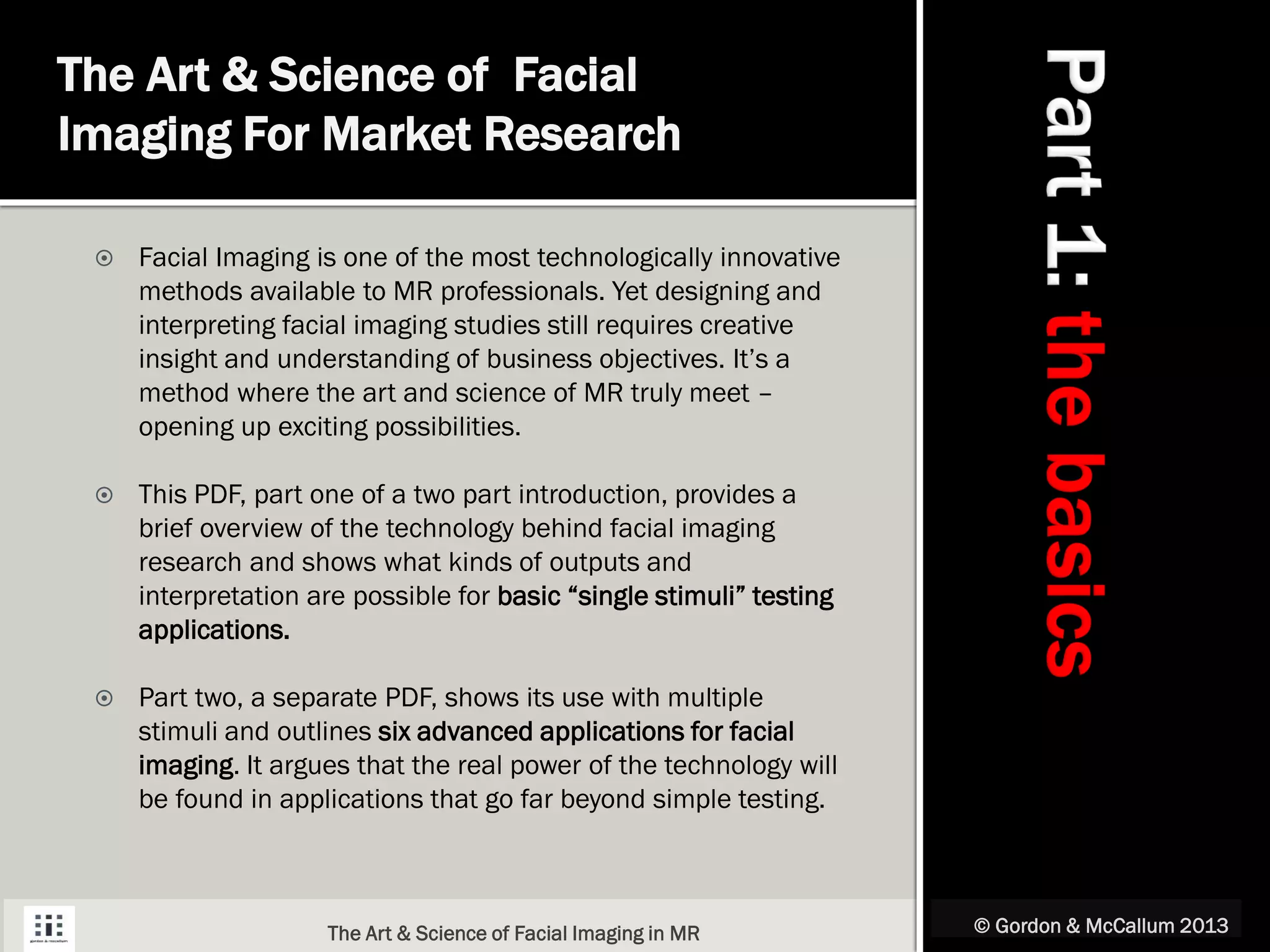 The document provides an introduction to facial imaging technology in market research, highlighting its innovative capacity to measure emotional responses to marketing stimuli through automated analysis of facial expressions. It outlines the importance of understanding emotional reactions for effective marketing and mentions advanced applications of facial imaging that go beyond basic testing. Additionally, it discusses the technology's capability to produce meaningful results with large sample sizes and offers insights into its implementation and potential in various research settings.