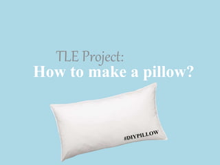 The document provides instructions for making a basic pillow at home. It outlines three parts to the process: preparing the fabric by cutting two equal squares or rectangles, stitching the pillow by sewing three sides and turning it right side out, and stuffing and closing the pillow by filling it and sewing the opening. Making pillows is a simple and inexpensive way to learn basic sewing skills rather than buying pre-made pillows from the store. The step-by-step directions guide the reader through each stage of the pillow making process.