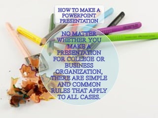 The document provides a step-by-step guide on creating a PowerPoint presentation. It emphasizes viewing the presentation through the 'slide show' option or by pressing F5, navigating through slides with arrow keys, and making necessary corrections. By following these tips, users can create an effective presentation efficiently.
