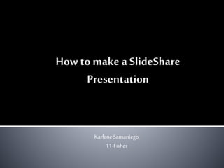 SlideShare is a website that allows users to upload presentations in various formats like PowerPoint, PDF, and Keynote, and view them on the site, mobile devices, or embedded on other websites. To upload a presentation, users sign up for an account, confirm their email, and select the file to upload from the top of the SlideShare homepage.