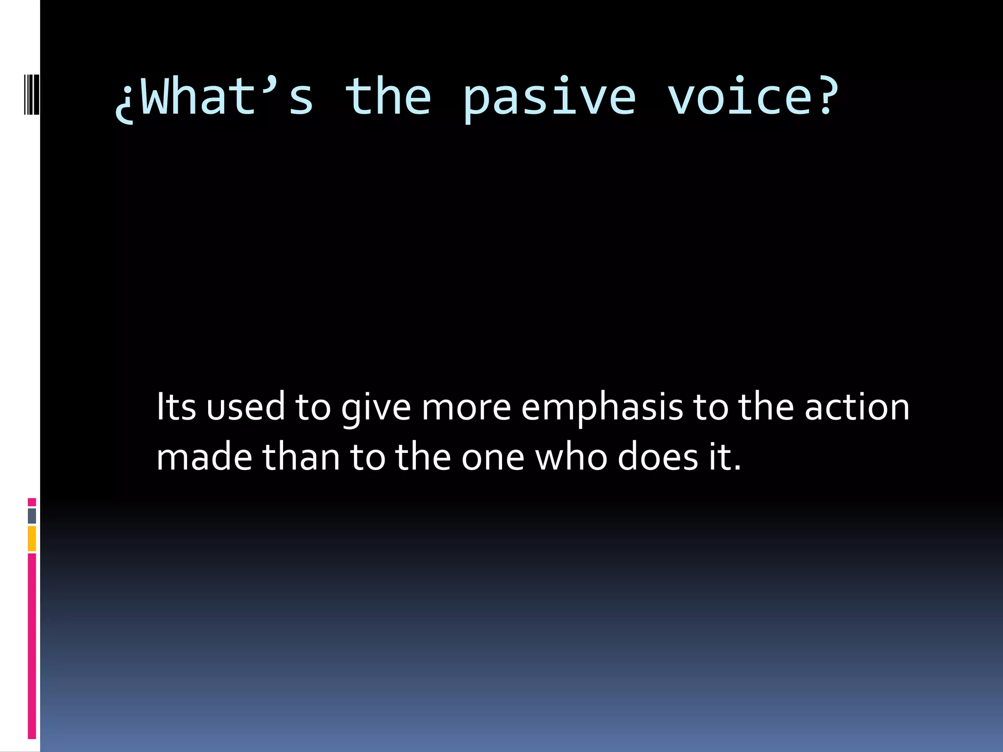 The document discusses the passive voice and how to use it. The passive voice emphasizes the action of the sentence rather than the subject performing the action. It is used when the subject is unknown or being omitted. To change a sentence from active to passive voice, the object becomes the subject and a form of "to be" plus the past participle of the main verb is added. Examples of active and passive voice constructions are provided.