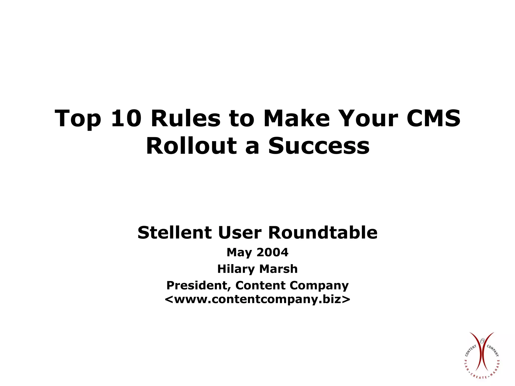The document provides 10 rules for a successful content management system (CMS) rollout. The rules are: