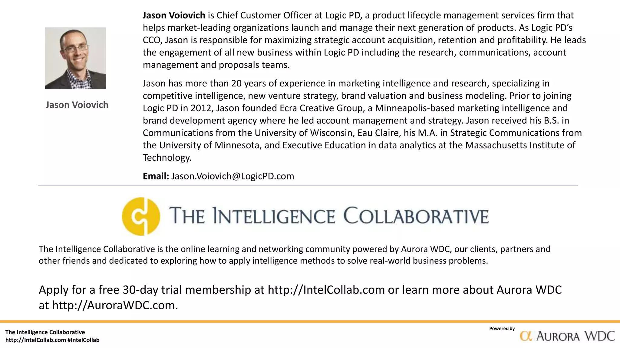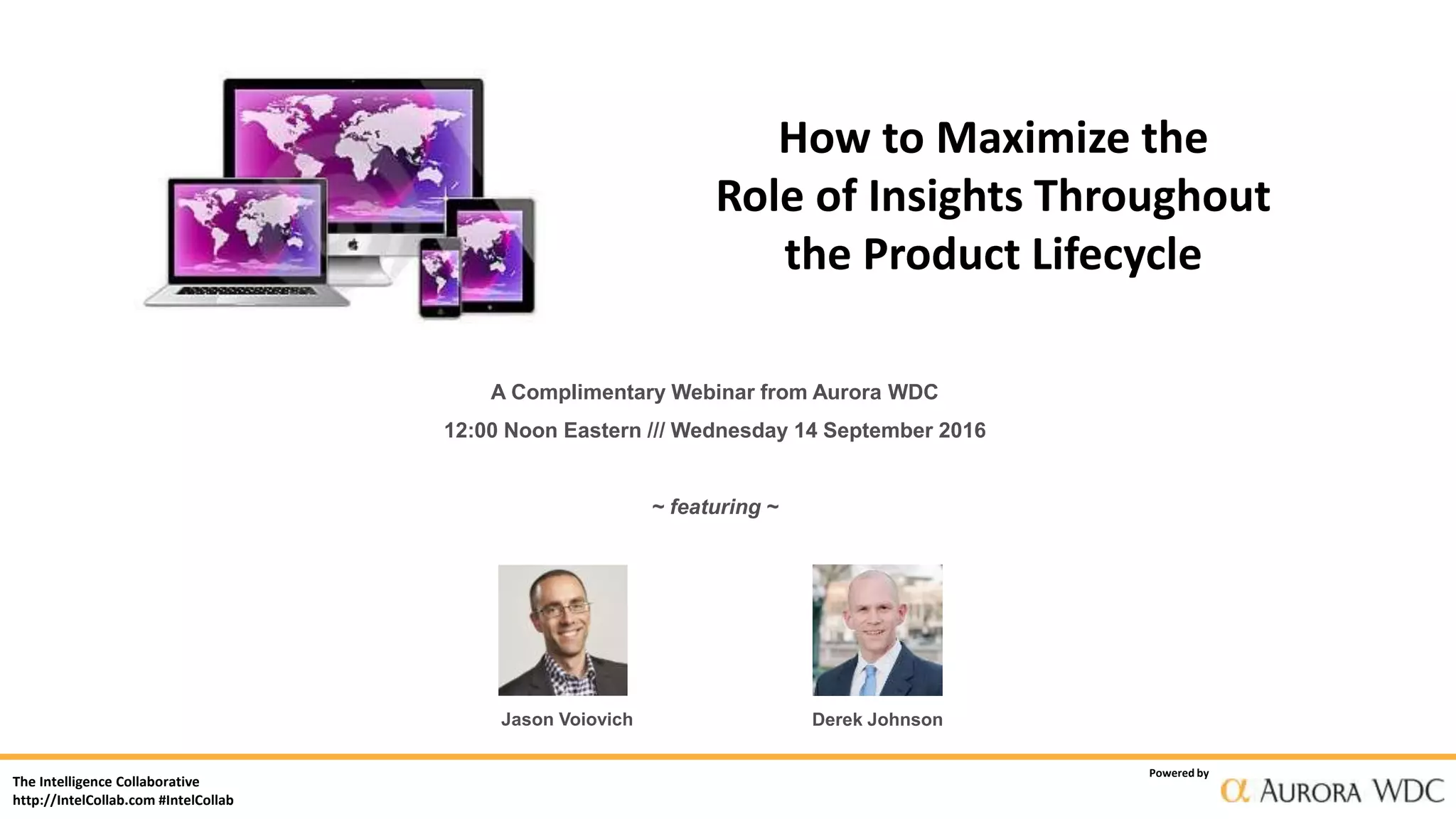 1) Jason Voiovich from Logic PD will host a webinar on maximizing insights throughout the product lifecycle.
