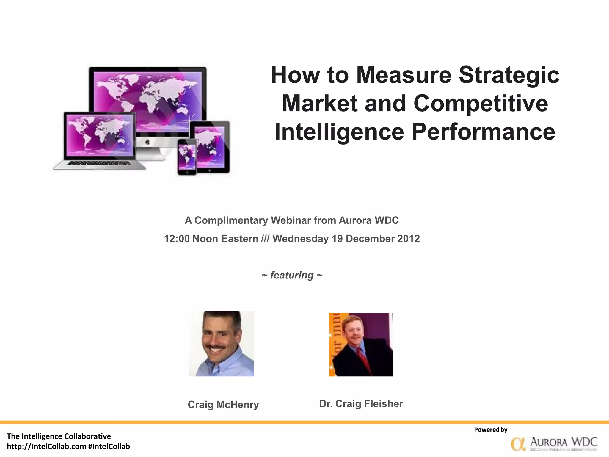 This document discusses a webinar on measuring the performance of strategic market and competitive intelligence (CI), emphasizing the importance of demonstrating CI value to stakeholders. It outlines strategies for overcoming common barriers to effectively measuring and articulating CI's impact on organizational performance, including calculating return on investment and fostering continuous improvement. The content is led by experts in CI, highlighting best practices for linking CI efforts to business outcomes and securing necessary resources.