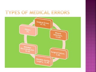 This document outlines a strategic plan to minimize medication errors in healthcare. It begins by defining medication errors and classifying their significance. It then discusses the extent of medication errors, finding they occur in 1 in every 19 hospital admissions. The document examines the many factors that contribute to errors, including poor communication, look-alike drug names, and busy work environments. It also presents approaches to reduce errors such as electronic medical records, barcoding medications, and computerized physician order entry, which can reduce serious medication errors by up to 81%. The goal of the plan is to understand, prevent, and minimize medication errors to improve patient safety.