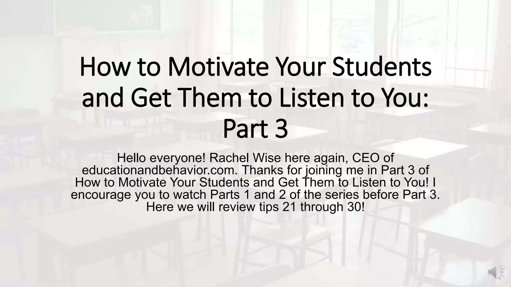 This document discusses tips 21 through 30 on motivating students and enhancing their listening skills. It emphasizes the importance of teaching strategies, effective communication with parents, individual meetings, maintaining a calm demeanor, using humor, and warmly saying goodbye to students. The series aims to provide educators with practical techniques to engage their students in the classroom.