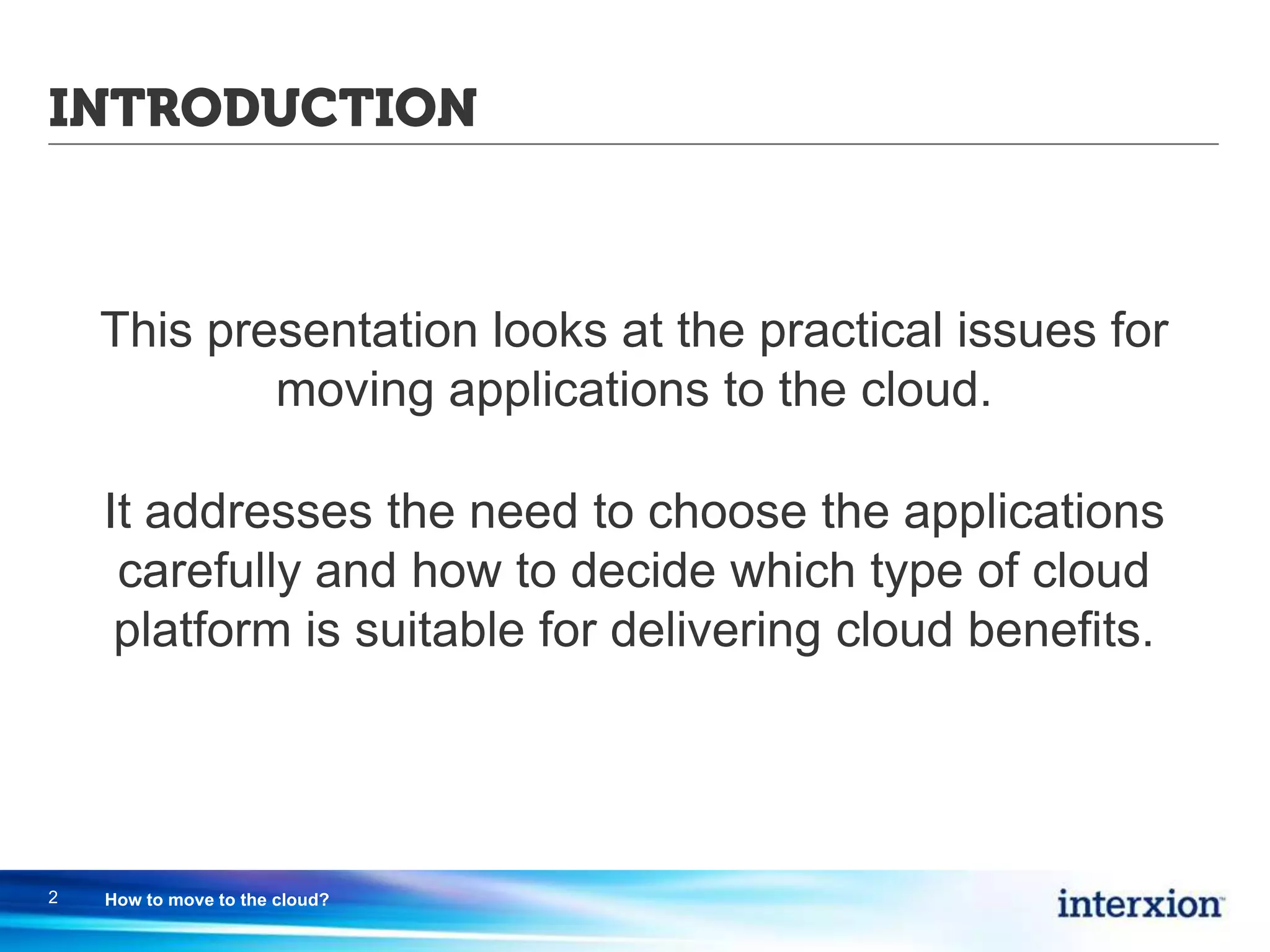 This document outlines practical steps and considerations for migrating applications to the cloud, including selecting suitable applications and deployment models: IaaS, PaaS, and SaaS. It also discusses migration paths, potential ROI, and the importance of assessing business-critical data, compliance, and disaster recovery capabilities. The goal is to provide a clear framework to help organizations transition effectively and capitalize on cloud benefits.