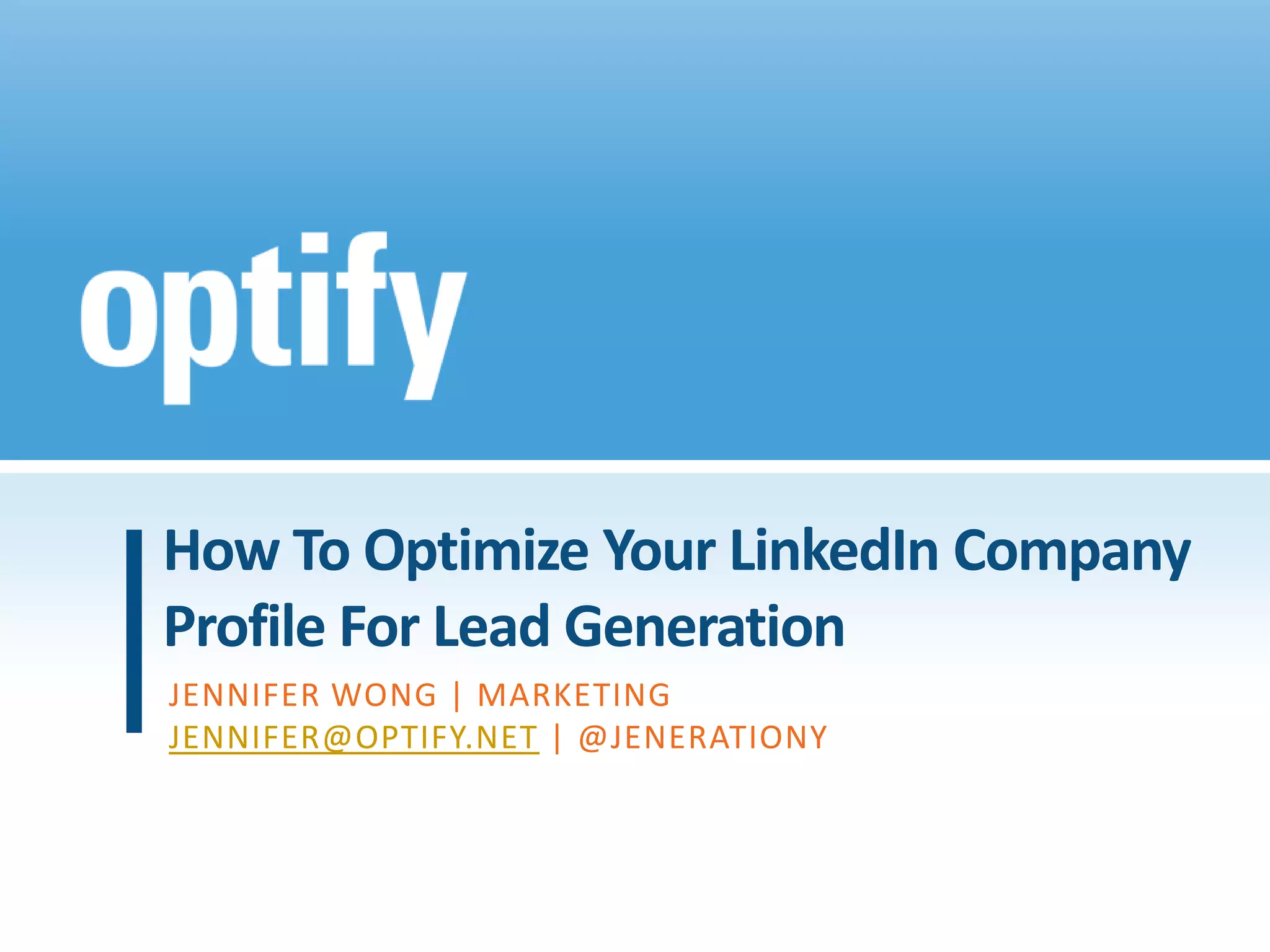 This document provides tips for optimizing a LinkedIn company profile for lead generation. It recommends using keyword-rich descriptions throughout the profile, designating admins, highlighting top products and services, adding offers and calls to action, embedding relevant videos, and analyzing metrics to improve performance over time. The goal is to engage audiences and drive traffic to landing pages to generate quality leads.