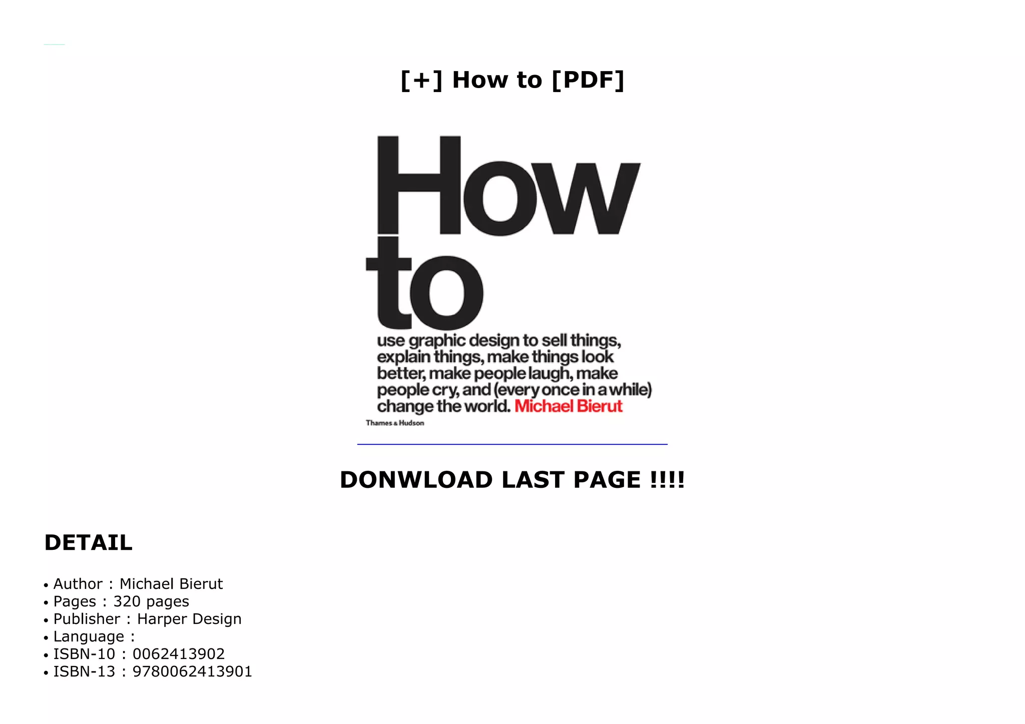 This document provides information about the book "How to" by graphic designer Michael Bierut. It summarizes that the book is Bierut's first career retrospective, showcasing over 35 of his noteworthy projects for clients over his career. It reflects his eclectic approach and accessibility. The book walks through each project from start to finish, providing insights into Bierut's creative process, working life, and the challenges of bringing innovative design ideas to clients. It offers inspiration for designers and insights into one of the most renowned creative minds in graphic design this century.