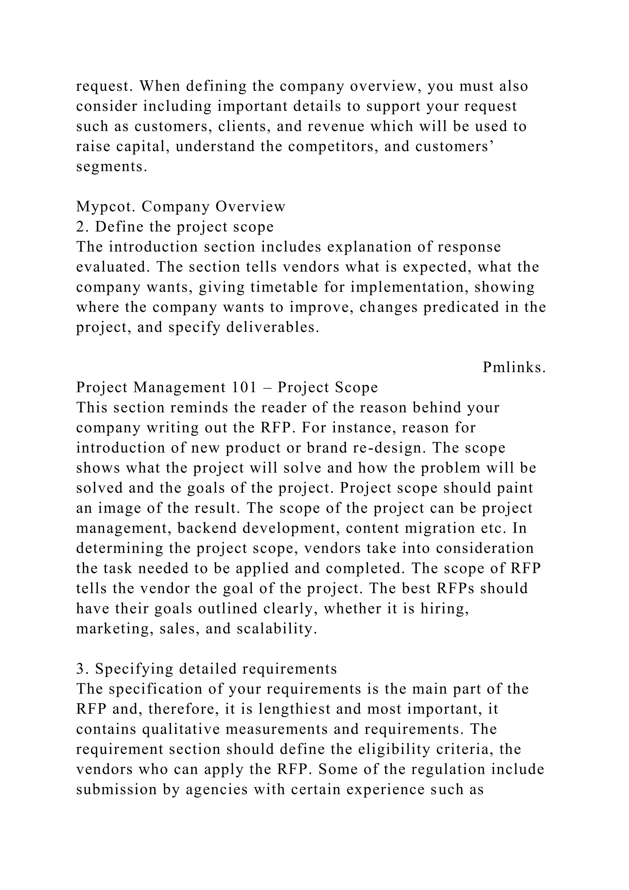 The document outlines eight essential steps for constructing an effective Request for Proposal (RFP) to ensure that suppliers understand project requirements. It emphasizes the importance of a well-defined company overview, project scope, detailed requirements, clear objectives, a realistic timeline, functional requirements, budget allocation, and selection criteria for vendors. Each step aims to improve the quality of vendor responses and ultimately lead to successful project outcomes.