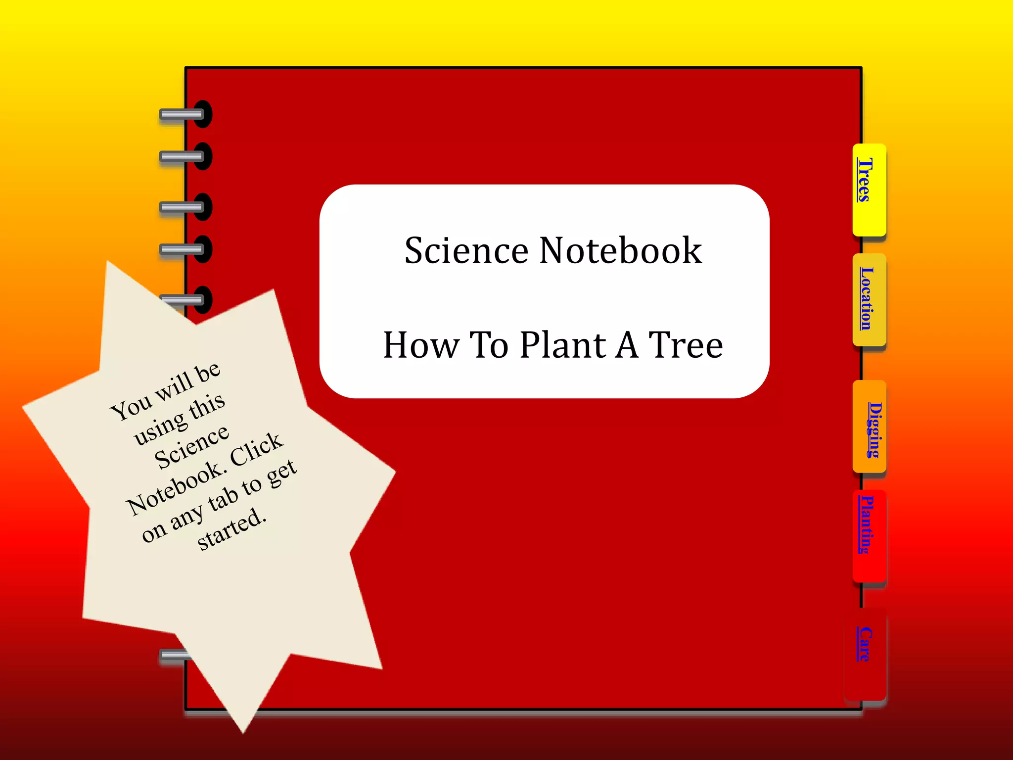 The document provides instructions for planting trees with youth, including how to choose a tree species, prepare the planting location, and care for the newly planted tree. Key steps include determining what trees are native to the area, selecting a suitable location based on soil type and sunlight, digging a hole at least twice as wide as the root ball, removing any wrappings from the root ball, and watering regularly after planting. The goal is to educate youth on proper techniques for planting and caring for trees.