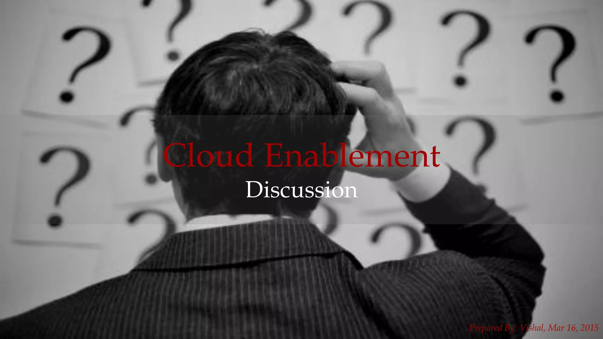 This document discusses moving an organization's IT infrastructure to the cloud. It provides background on the organization's current challenges, including lack of standardization, high operating costs, and inability to quickly transform or grow. The document analyzes the organization's current IT maturity and spending. It argues that cloud adoption would help the organization run, grow, and transform its business in a more agile and digital way. The document outlines cloud offerings and benefits, as well as challenges to address in a cloud sales pitch.