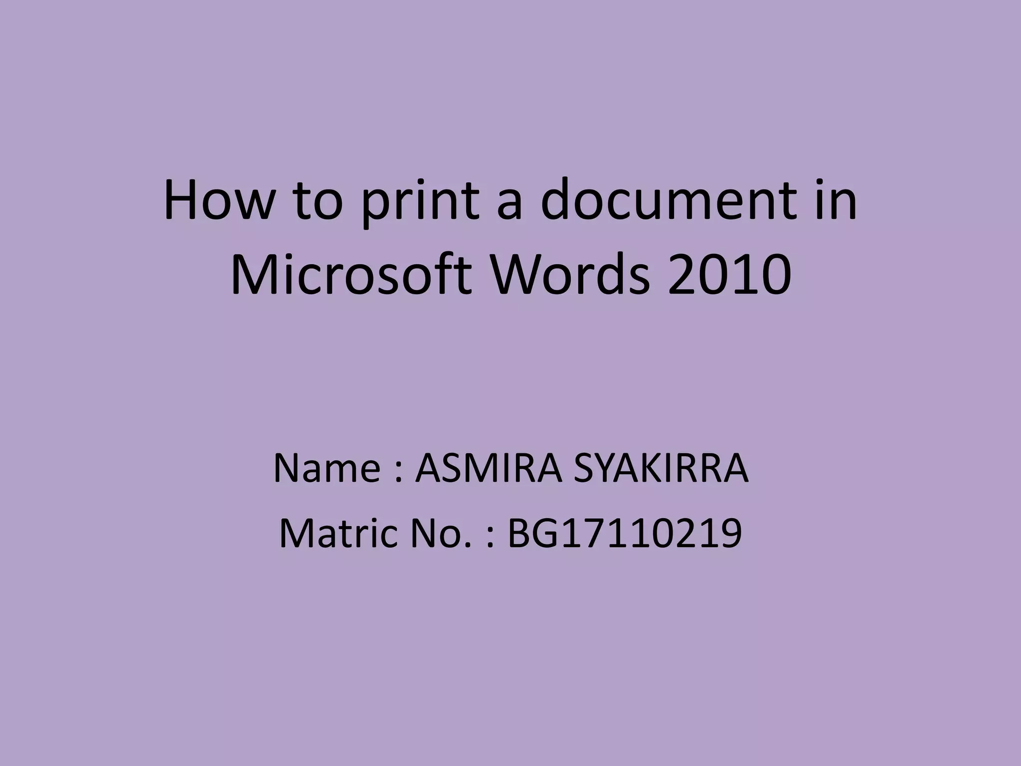 To print a document in Microsoft Word 2010, click the File tab in the top left corner, select Print from the menu to open the Print dialogue box, and set the desired printing settings before clicking Print to send the document to the printer.