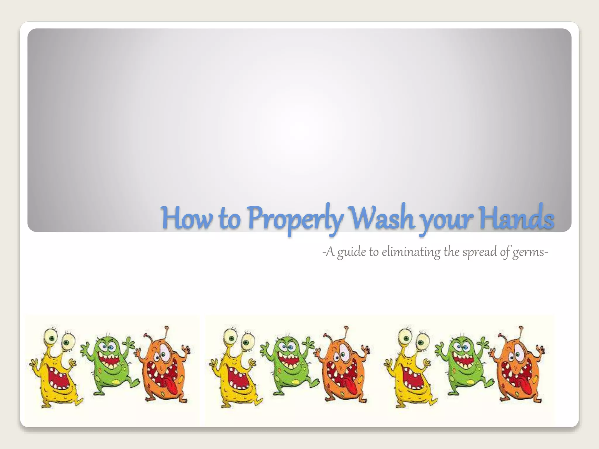 Proper hand washing is important to prevent the spread of germs. The document outlines when hand washing should occur, such as before eating and after using the restroom or touching animals. It provides steps for effective hand washing, which includes lathering soap and scrubbing for 20 seconds, paying attention to the back of hands and under nails. Parents should teach children to wash hands thoroughly by having them sing songs during washing.