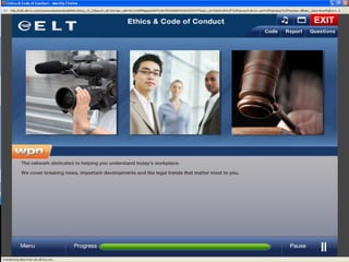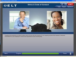 The document outlines the importance of ethics and compliance training for organizations, emphasizing legal requirements under laws such as the Sarbanes-Oxley Act and federal sentencing guidelines. It covers the necessity for ongoing training and effective compliance programs, particularly for government contractors and private companies aspiring to public status. Additionally, it discusses the structure and content of ELT's online compliance courses designed to meet these training needs.
