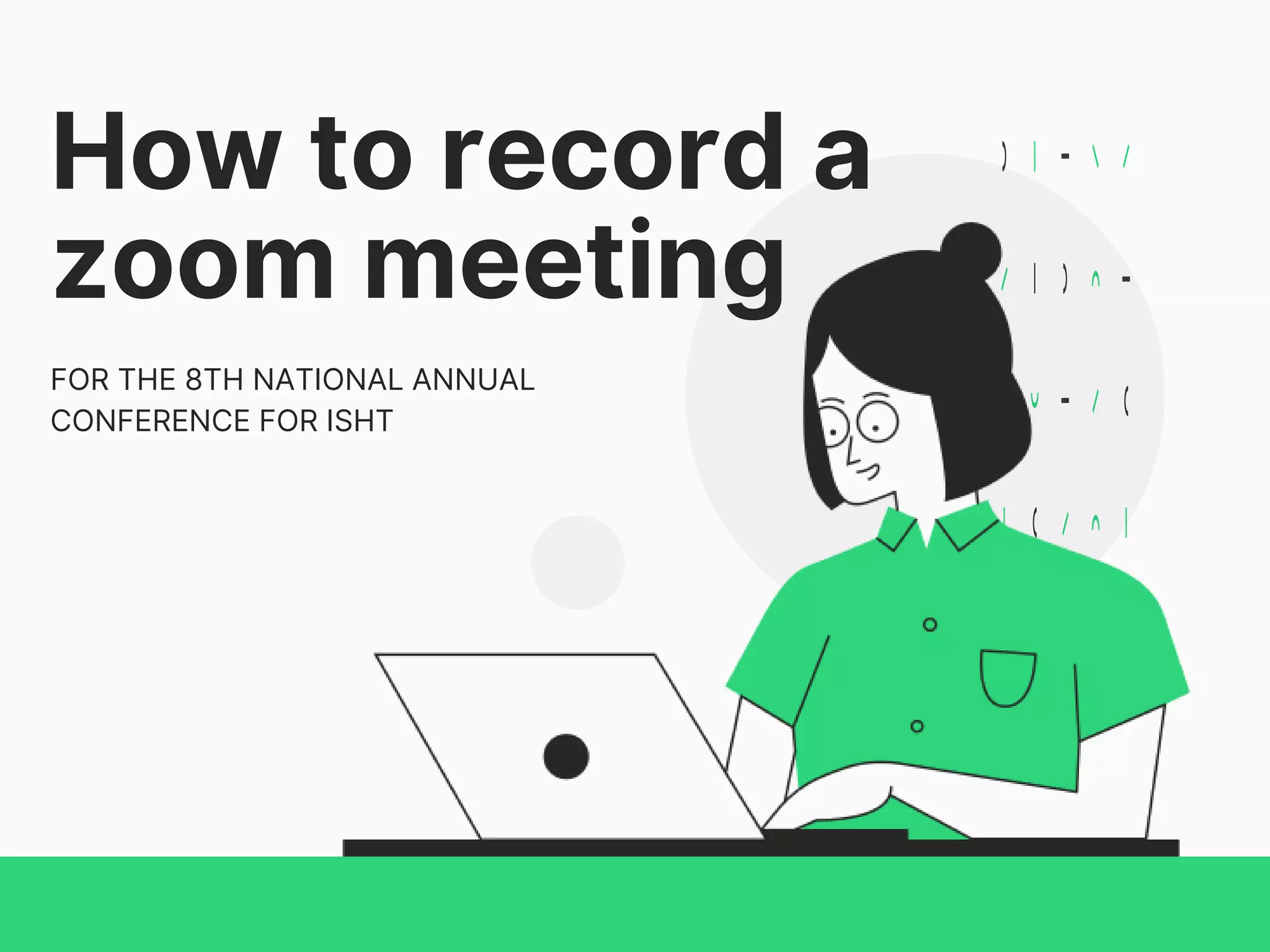 This document provides a step-by-step guide on how to record a Zoom meeting for the 8th National Annual Conference for ISHT. It outlines the necessary settings to schedule and start the meeting, including screen sharing and ensuring audio and video are active. The recorded meeting will be saved in a specified location on the user's computer, and instructions for renaming the file are included.