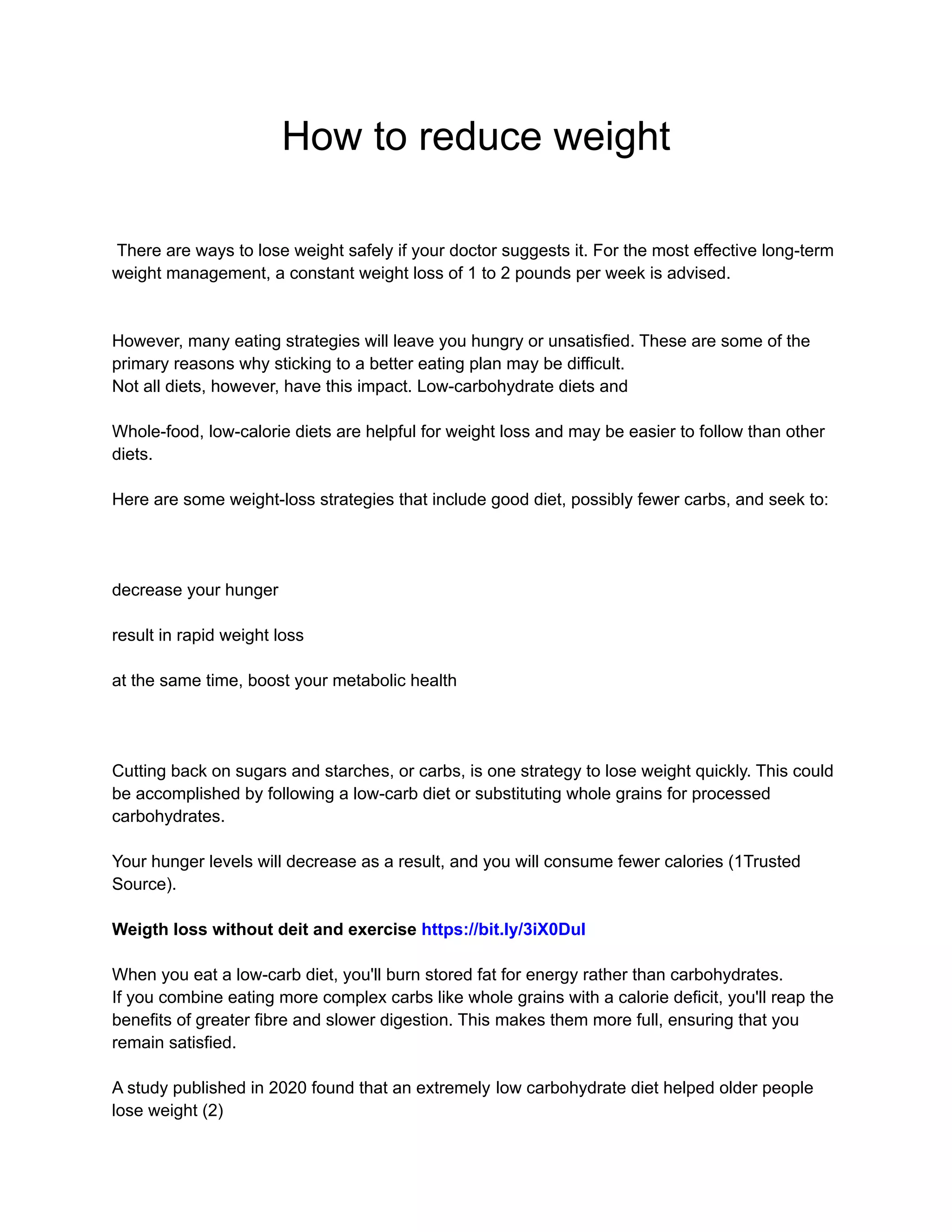 There are several effective strategies for losing weight safely, including following a low-carbohydrate or whole-foods low-calorie diet which can help reduce hunger and lead to rapid yet healthy weight loss. A low-carb diet causes your body to burn stored fat for energy instead of carbohydrates, and eating complex carbs and limiting calories can help you feel full while achieving weight loss. However, long-term implications of a low-carb diet are still being studied, and it can be difficult to stick to strictly, so balancing proteins, fats, vegetables and small amounts of whole grains or following a lower calorie plan may be better options for sustained weight management.