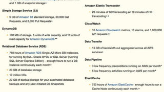 4. Taking advantage of AWS's economies of scale through consolidated billing and free services helps lower overall spend. Planning workload usage of spot instances can achieve up to 85% savings.