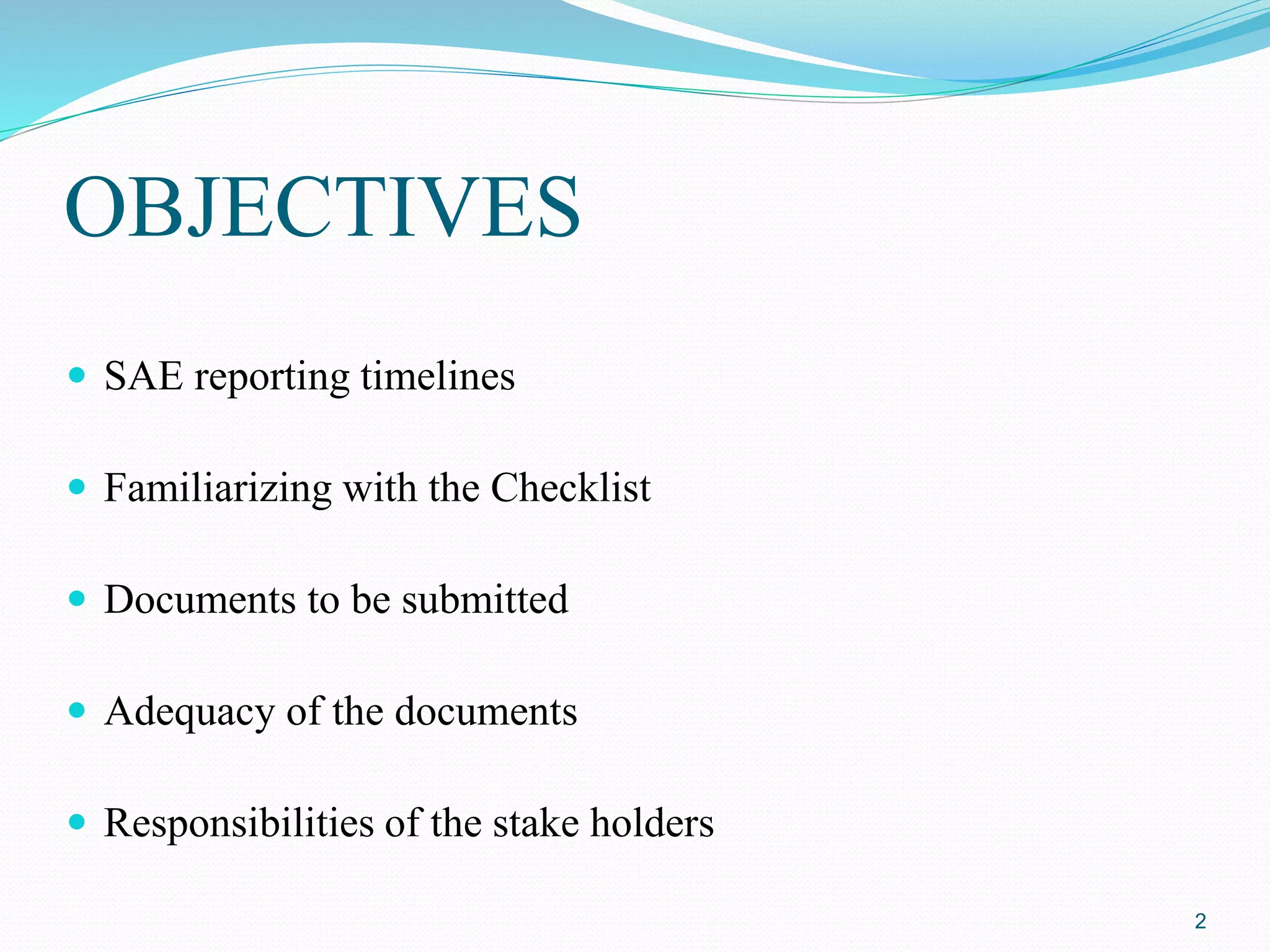 This document provides guidance on reporting serious adverse events (SAEs) that occur during clinical trials in India. It outlines the key stakeholders involved in SAE reporting, including the investigator, sponsor/CRO, ethics committee, and Drug Controller General of India (DCGI). The timelines and process for initial and follow-up SAE reporting are defined. Requirements for the documents to be submitted in SAE reports, such as the checklist, case report form pages, and discharge summary, are also reviewed to ensure completeness and accuracy of the reports. Common errors made in SAE documentation are highlighted.