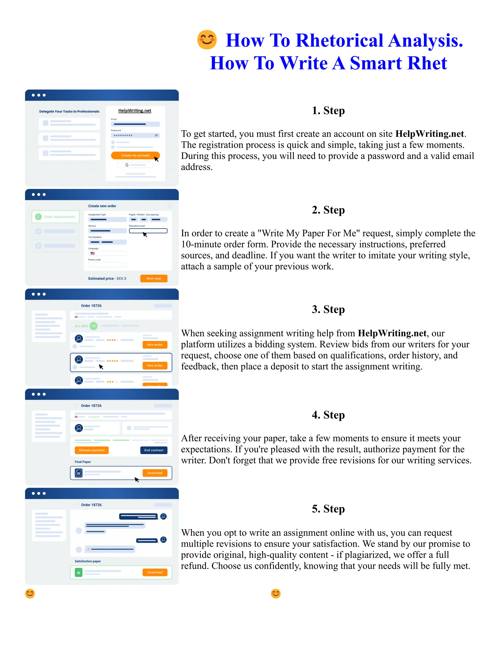 The document provides instructions for how to request and complete an assignment writing request on the HelpWriting.net site. It involves 5 steps: 1) Create an account with email and password. 2) Complete an order form with instructions, sources, and deadline. 3) Review bids from writers and choose one. 4) Review the completed paper and authorize payment. 5) Request revisions until satisfied. The purpose is to outline the process for students to get high-quality original content through the site's writing services.