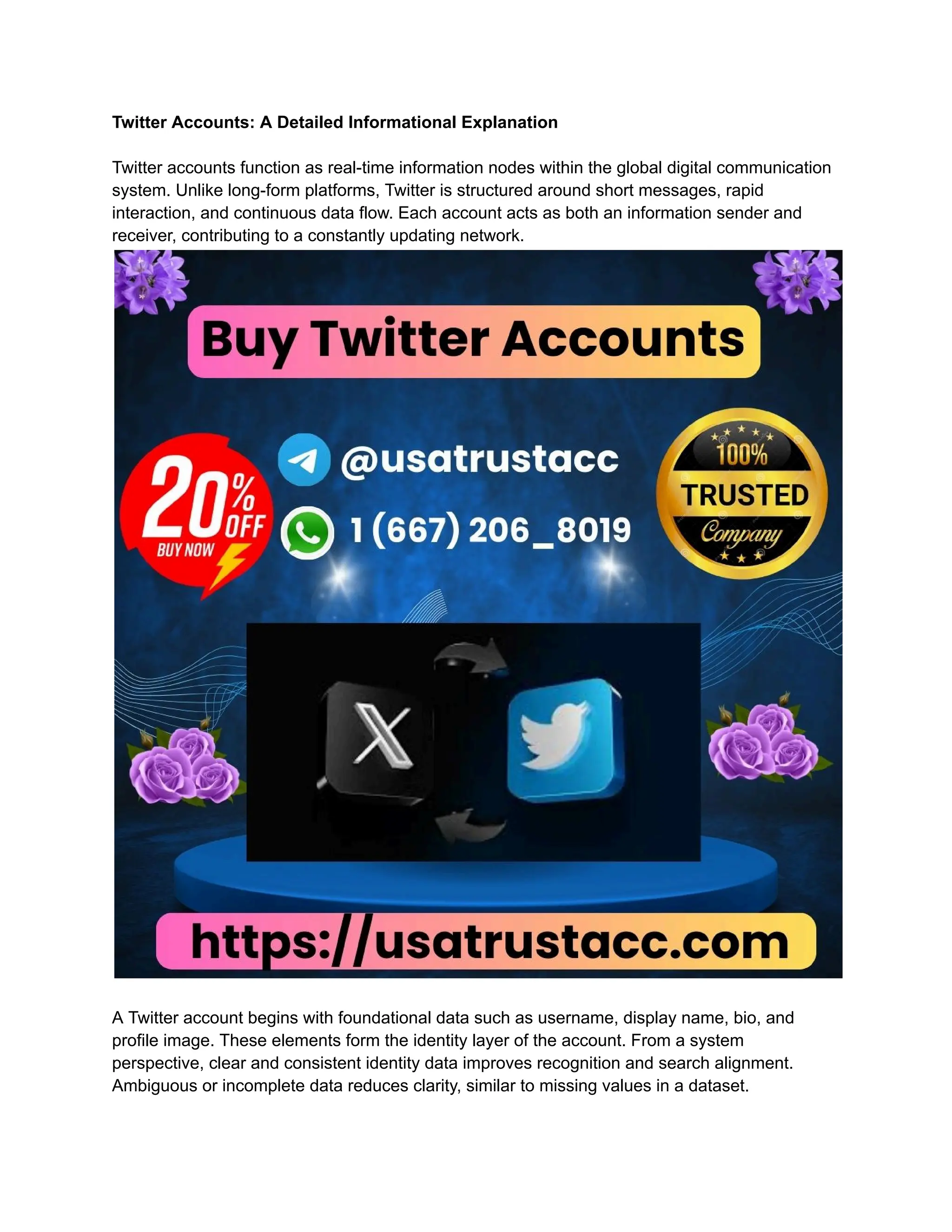 Looking to buy Twitter accounts that are secure, trusted, and ready for social media marketing? usatrustacc provides fully verified Twitter accounts that are phone-verified (PVA), ensuring smooth access, high security, and reliability for personal or business promotions. Each account is carefully prepared to prevent unauthorized use and ensure seamless functionality. This guarantees a safe and trustworthy transaction.