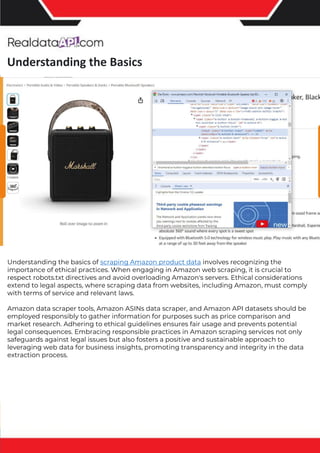 The document discusses the importance and implementation of competitor price trackers in the e-commerce landscape, highlighting their role in developing effective pricing strategies. It outlines the benefits of using such tools, including time efficiency, cost-effectiveness, and enhanced accuracy, which help businesses remain competitive and informed. Additionally, the document provides guidance on web scraping Amazon product data using Python, emphasizing ethical practices and the technical steps involved.